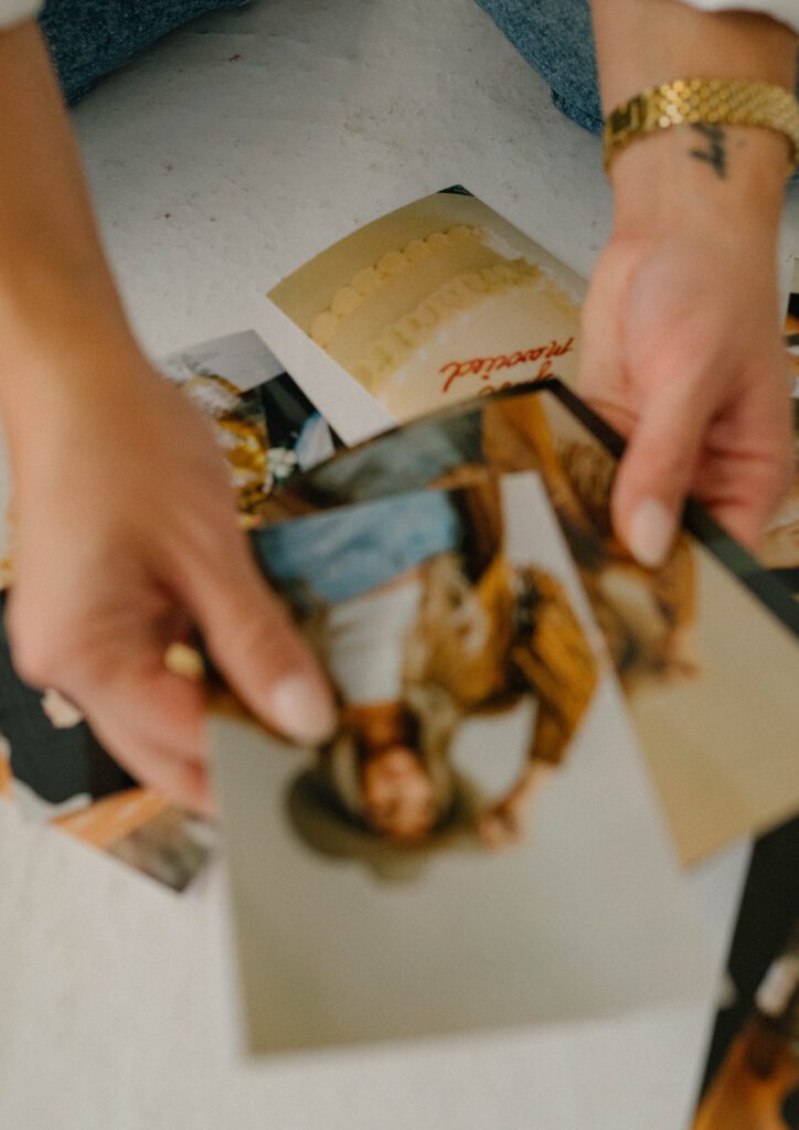 For example, working with a photographer who specialized in military and special event sessions, I asked: Do you have any symbols in your home that tell the story of legacy and commemoration? Do you have a locket handed down to you from a beloved grandparent? Do you have a cherished photo of your family in the cute frame? Do you have a favorite flower that represents a birth month or something that was in your own wedding bouquet? Do you have a box of old family photos you could sift through to tell the story of your own family legacy?