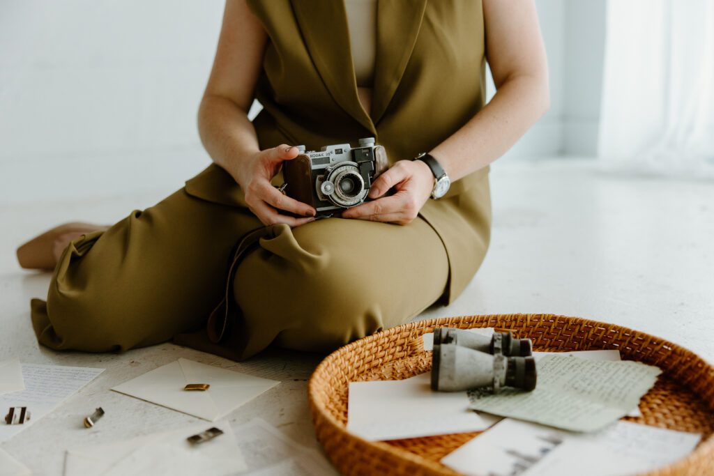Perhaps you got into photography because your grandma was a photographer, and she handed down a cherished film camera to you. Or, maybe you began cooking when a family member passed, and you wanted to contribute to your household. Maybe you’re like me, and you keep dried flowers from all of your life events and add those flowers into your artwork. Wherever your story began, or whatever fuels you now, there are symbols associated with them that you can use as props in your photoshoot.